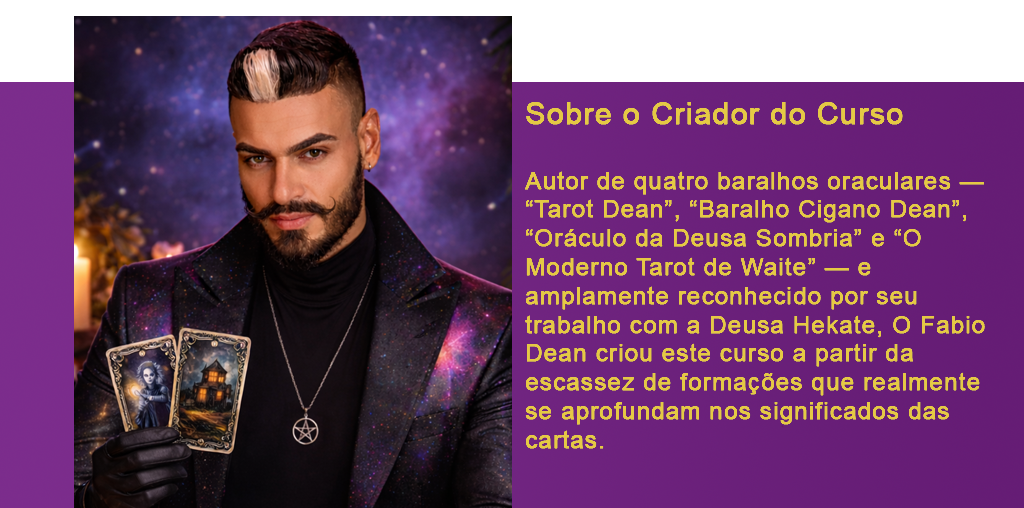 Você também irá compreender a lógica do baralho, como as cartas se comunicam entre si, como interpretar combinações e identificar padrões nas leituras. Além disso, aprenderá como realizar tiragens simples e eficazes, se preparar energeticamente e aplicar o método de forma prática em situações reais, mesmo começando do zero.